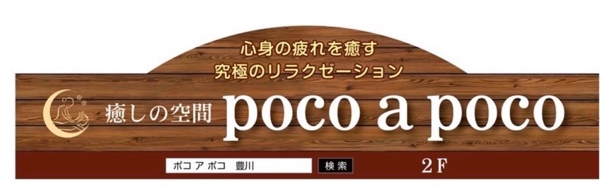poco a poco(ポコ ア ポコ)とは、イタリア語で「焦らず・ゆっくり」という意味を持ちます。このストレス社会において心身不調の方が増えている中、1人でも多くのお客様が癒されて心身ともに元気に過ごして頂ける施術やセラピーを提供していきたいという思いを込めて考えました。